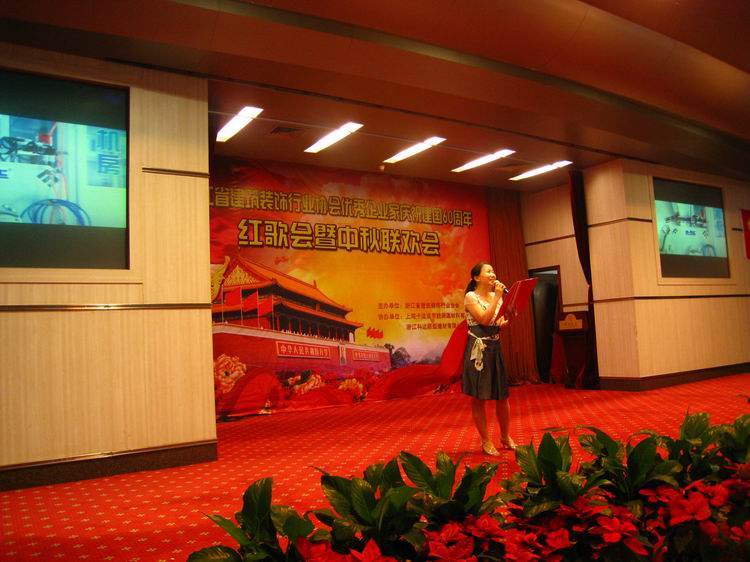 9月25日下午,公司參加了省家裝協(xié)會舉辦的慶祝建國60周年紅歌會暨中秋聯(lián)歡會,櫥柜部陸美勤進行聲情并茂的詩朗誦《問候您,祖國》。博得臺下的與會人員的陣陣掌聲。此外也在眾多的歌舞節(jié)目中脫穎而出獲得優(yōu)勝獎。