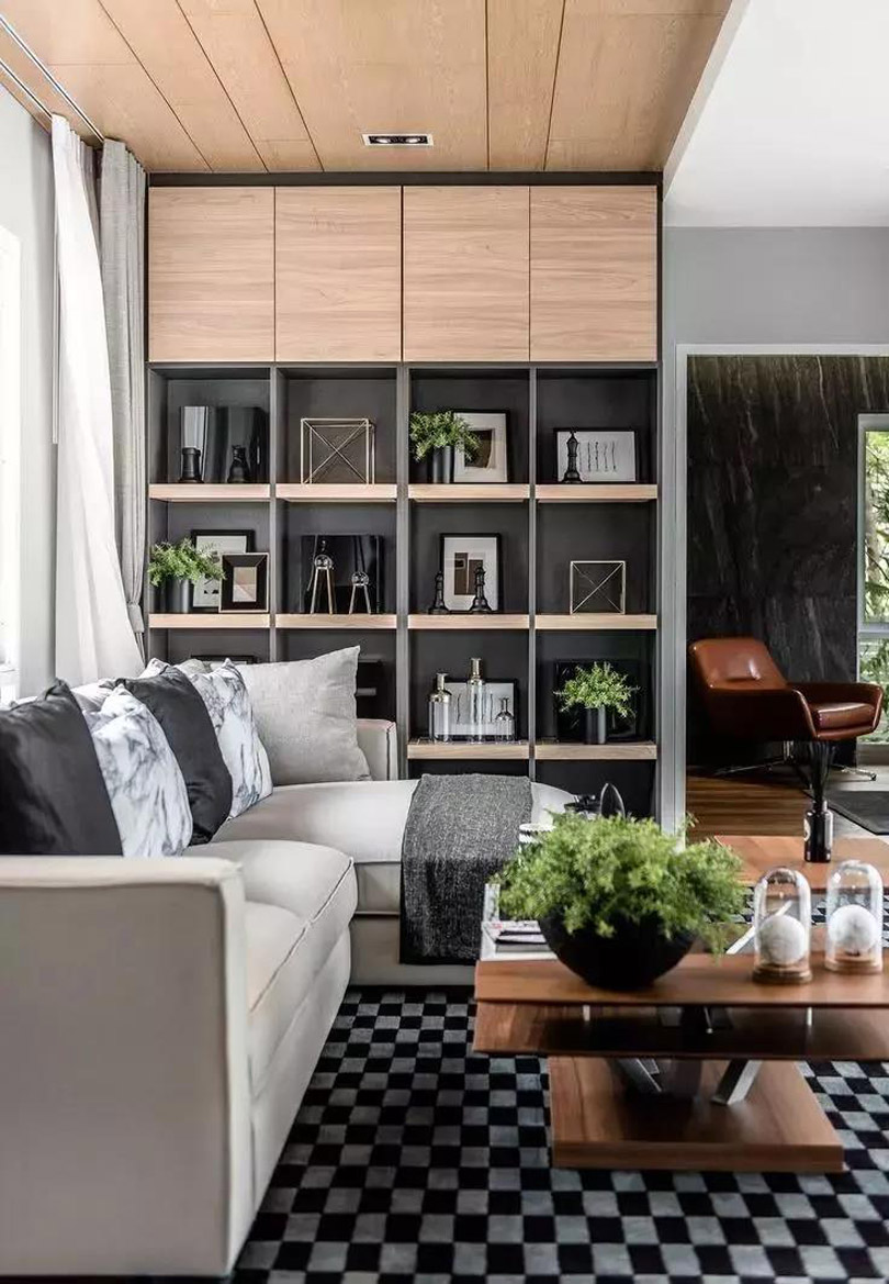 格柵造型的木質(zhì)吊頂,天然會(huì)給人一種簡(jiǎn)約又不單調(diào)的視覺感受。