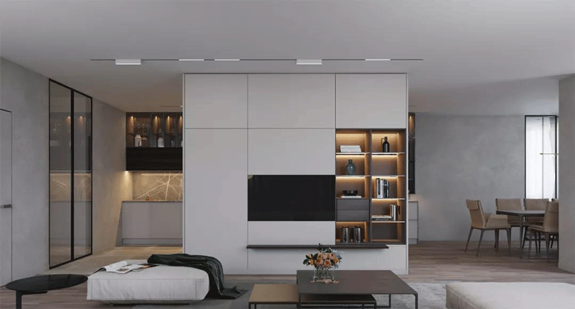 柜體如果全做開放式,會非常考驗主人的搭配功力,搭配不當只會增添視覺疲勞感;全做封閉式,可能會略顯單調。因此“封閉”與“開放”做3:1的比例最好。