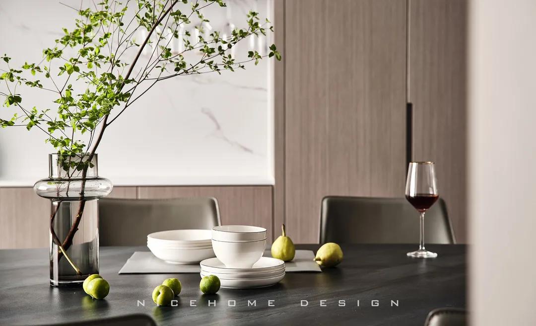 【項(xiàng)目·信息】 地址 / 銀億東岸 戶型 / 四室兩廳 面積 / 200㎡ 風(fēng)格 / 現(xiàn)代簡(jiǎn)約 設(shè)計(jì)施工 / 浙江南鴻裝飾 1 關(guān)于作品 本案以現(xiàn)代簡(jiǎn)約為主題,簡(jiǎn)潔明快的設(shè)計(jì)風(fēng)格為主調(diào),著力體現(xiàn)家的精致與個(gè)性,符合現(xiàn)代人的生活品味。 公共區(qū)域整體采用暖咖和黑、白色調(diào),溫和親切又帶著現(xiàn)代感的利落灑脫,木格柵增強(qiáng)視覺效果,軟裝上則重點(diǎn)用橙色點(diǎn)綴,烘托溫馨氣氛與活力感受。 2 戶型圖 3 設(shè)計(jì)落地 玄關(guān) ENTRANCE 玄關(guān)端景處一幅格外醒目的復(fù)刻畫,大色塊的紅彰顯熱烈、前衛(wèi),寓意主人對(duì)新生活的愛和熱忱,從今往后,要把每一天都過得“熱氣騰騰”! 客廳 LIVING ROOM 客廳,暖咖色伴隨著溫柔的觀感,讓時(shí)光也仿佛靜止于此。沒有特別多收納設(shè)計(jì),這里的一切布置均以“美”為第一要義。 電視背景墻的設(shè)計(jì),低調(diào)中透著華麗。高顏值的大理石磚搭配錯(cuò)落有致的木格柵,冷暖結(jié)合,細(xì)節(jié)處再點(diǎn)綴光影,簡(jiǎn)潔而富有格調(diào)。 木質(zhì)格柵,素來自帶一種東方禪意之美,虛實(shí)相生,正是架構(gòu)意境的獨(dú)到方式。木飾面板中藏起通往次臥的房門,視覺高度統(tǒng)一。沙發(fā)與茶幾選擇低矮款式,有利于縱向拉伸層高。 餐廳 DINING ROOM 一個(gè)優(yōu)秀的餐廳,光靠視覺,就能成功挑動(dòng)你的味蕾,再平凡的食物也因此裹上了一層美好滋味。 整排餐邊柜兼做酒柜,玻璃柜內(nèi)藏酒,儲(chǔ)物柜里存放食品,實(shí)用性與美觀度都是一流。窗邊做了小水吧,延續(xù)廚房的功能,餐前餐后的手部清潔也更方便。 在這里每天給孩子做一頓愛心早餐,給愛人煮一壺香醇的咖啡,幸福的感覺就這樣漸漸氤氳開來。 廚房 KITCHEN 廚房寬敞明亮,黑色櫥柜較一般櫥柜而言更能凸顯質(zhì)感,功能設(shè)備完善,在吊頂上也做足了功夫,造型感與線條感呼應(yīng)整體風(fēng)格。 過道 CORRIDOR 溫潤(rùn)的木材非常容易給人親近的感覺,無形中就消弭掉空間與居者的距離。過道一側(cè)設(shè)計(jì)儲(chǔ)物區(qū)域,層架上適合擺放書籍、小飾品等,空間瞬時(shí)生動(dòng)了起來。 臥室 BEDROOM 主臥延續(xù)公共區(qū)域的色調(diào),米灰色硬包和木飾面,讓溫暖、淡雅的味道徘徊其中。一盞暖意小吊燈垂下,增強(qiáng)空間的調(diào)性,小飄窗則賦予臥室更多的浪漫色彩,和對(duì)生活的美好想象。 次臥,皮藝、布料、金屬與線條的融合,交匯出高品質(zhì)精致感。 粉色是兒童房一直在流行的主題,許多女孩子的夢(mèng)里或許都有這樣一個(gè)如童話般的飄著粉紅泡泡的房間吧~