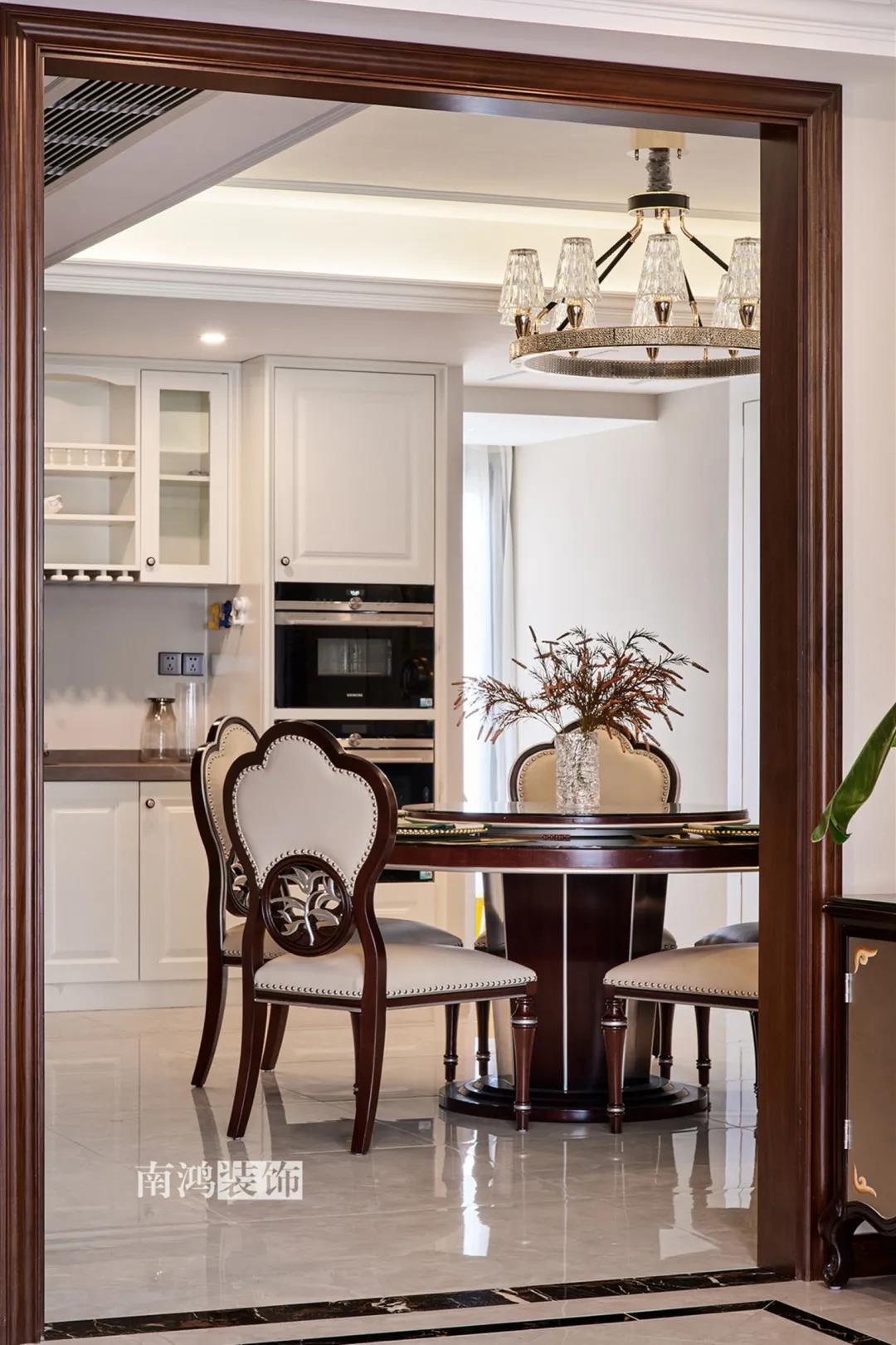 家里人口較多,基于實際需求考慮,使用圓桌是最合理的選擇。開放式操作臺兼做餐邊柜,中西結合的餐飲習慣也在這里得到了充分的體現。