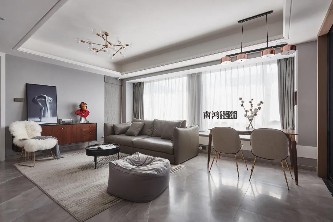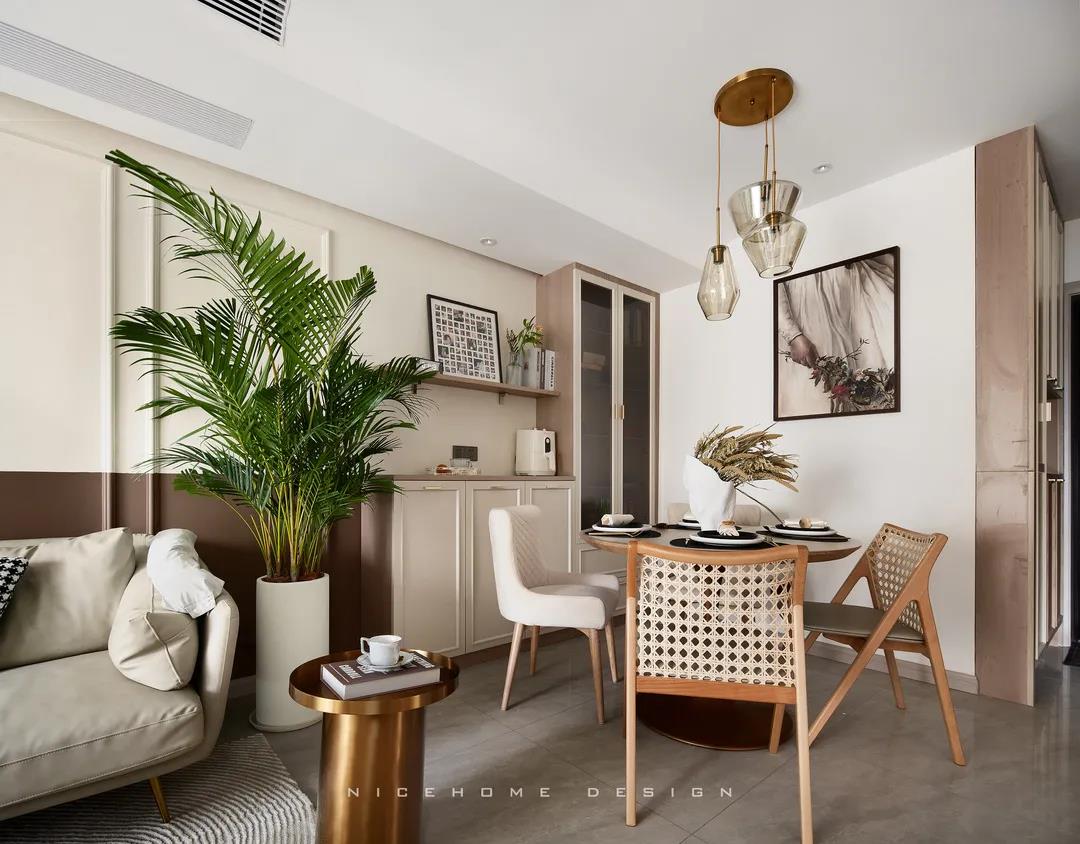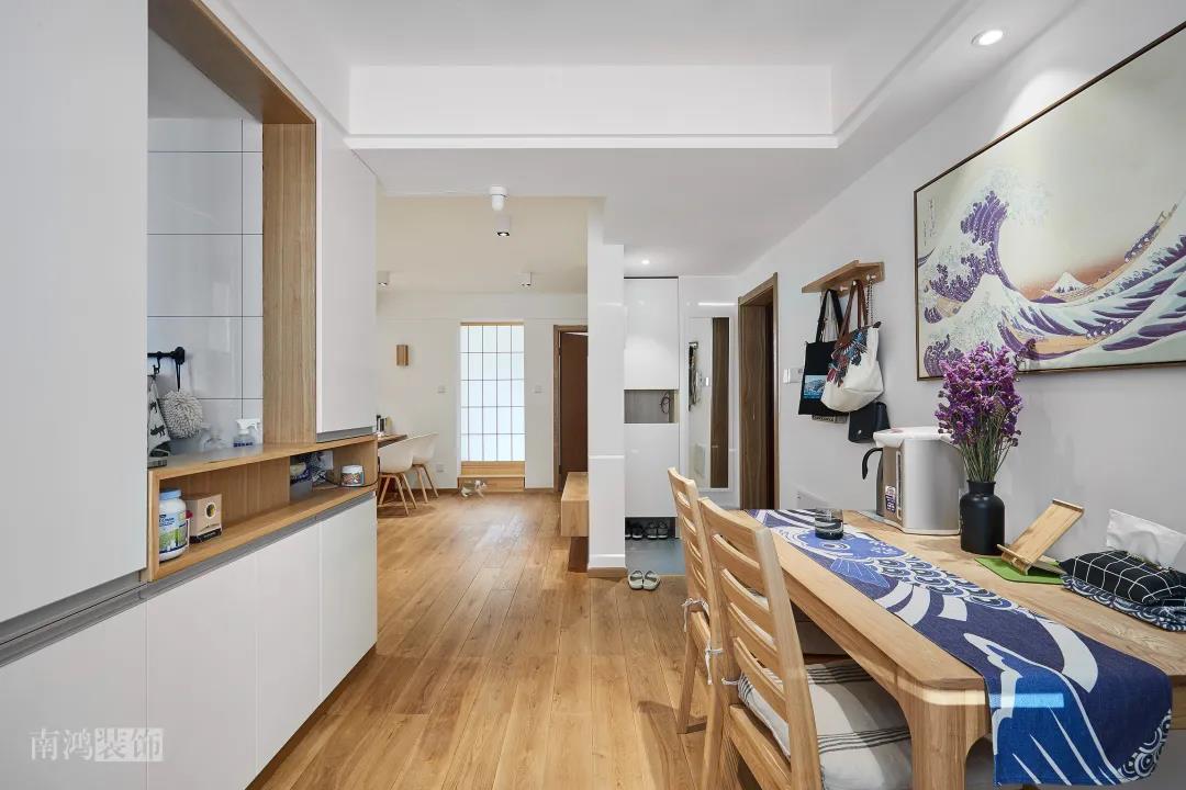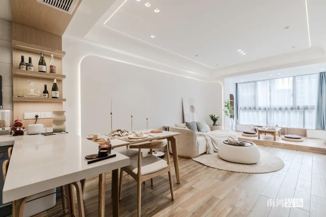 同理,客廳與餐廳都比較緊湊的話,不如就將二者做成一體式設(shè)計(jì),功能放在同一個(gè)空間里,視野會(huì)因此變得開(kāi)闊許多。