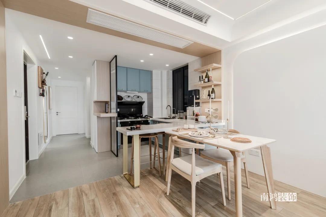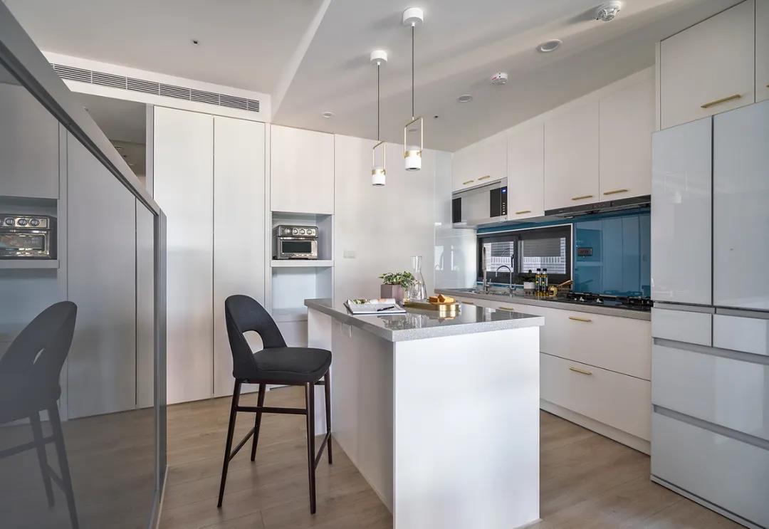比如,開(kāi)放式餐廚空間,讓餐廚兩塊區(qū)域的動(dòng)線共享,實(shí)現(xiàn)“1+1>2”的效果,小戶型也能擁有一個(gè)比較寬松舒適的做飯、就餐空間。