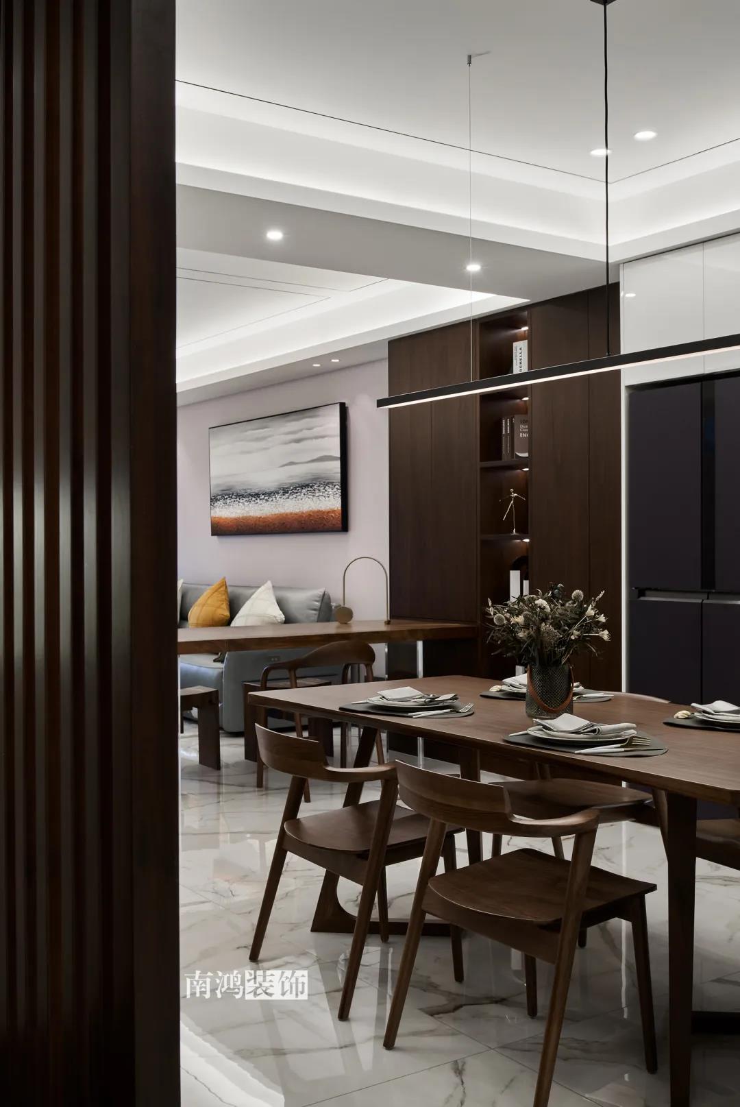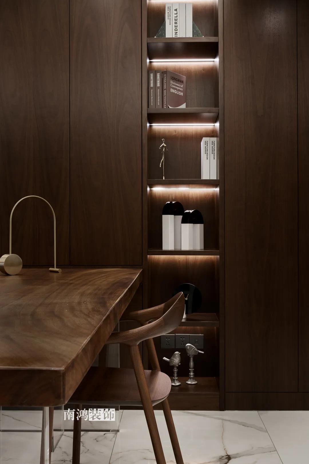溫潤的胡桃木紋理典雅大方,空間的詩意氛圍在簡約的線條層次中被有力烘托出來。