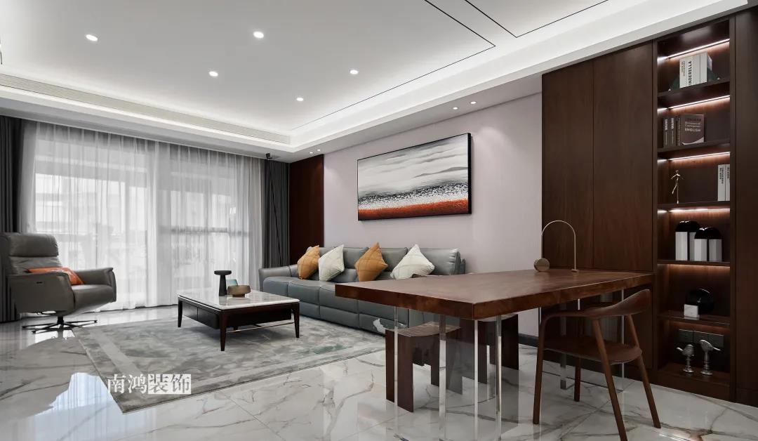 2、客餐廳兩塊區域中間做一個書吧用以分隔空間,增加層次性。