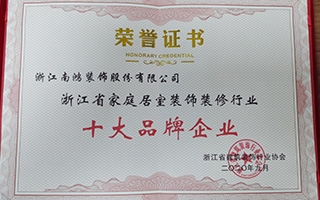 喜報(bào)!南鴻裝飾獲省裝飾行業(yè)十大品牌稱號(hào)!